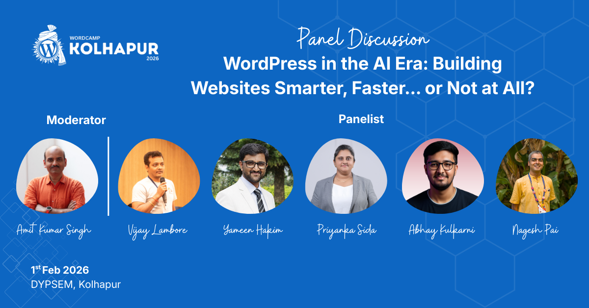 We’re thrilled to announce a special panel discussion on “WordPress in the AI Era : Building websites smarter, Faster … or not at All? ” at WordCamp Kolhapur 2026!